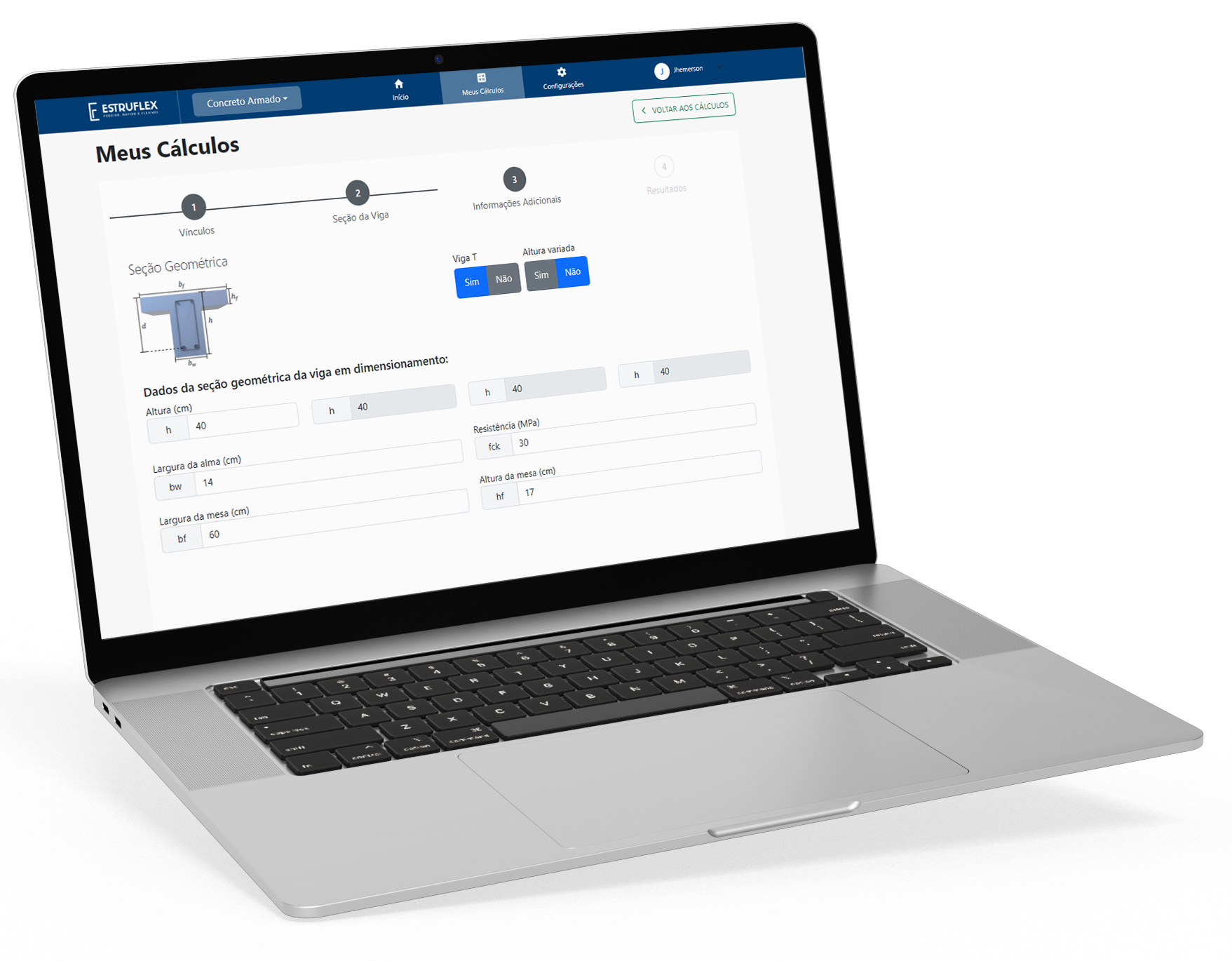Imagine ter a capacidade de realizar cálculos complexos de diversos elementos estruturais com apenas alguns cliques. Com o Estruflex isso é possível! Nossa plataforma simplifica todo o processo, permitindo que você gere resultados precisos de maneira rápida e eficiente.